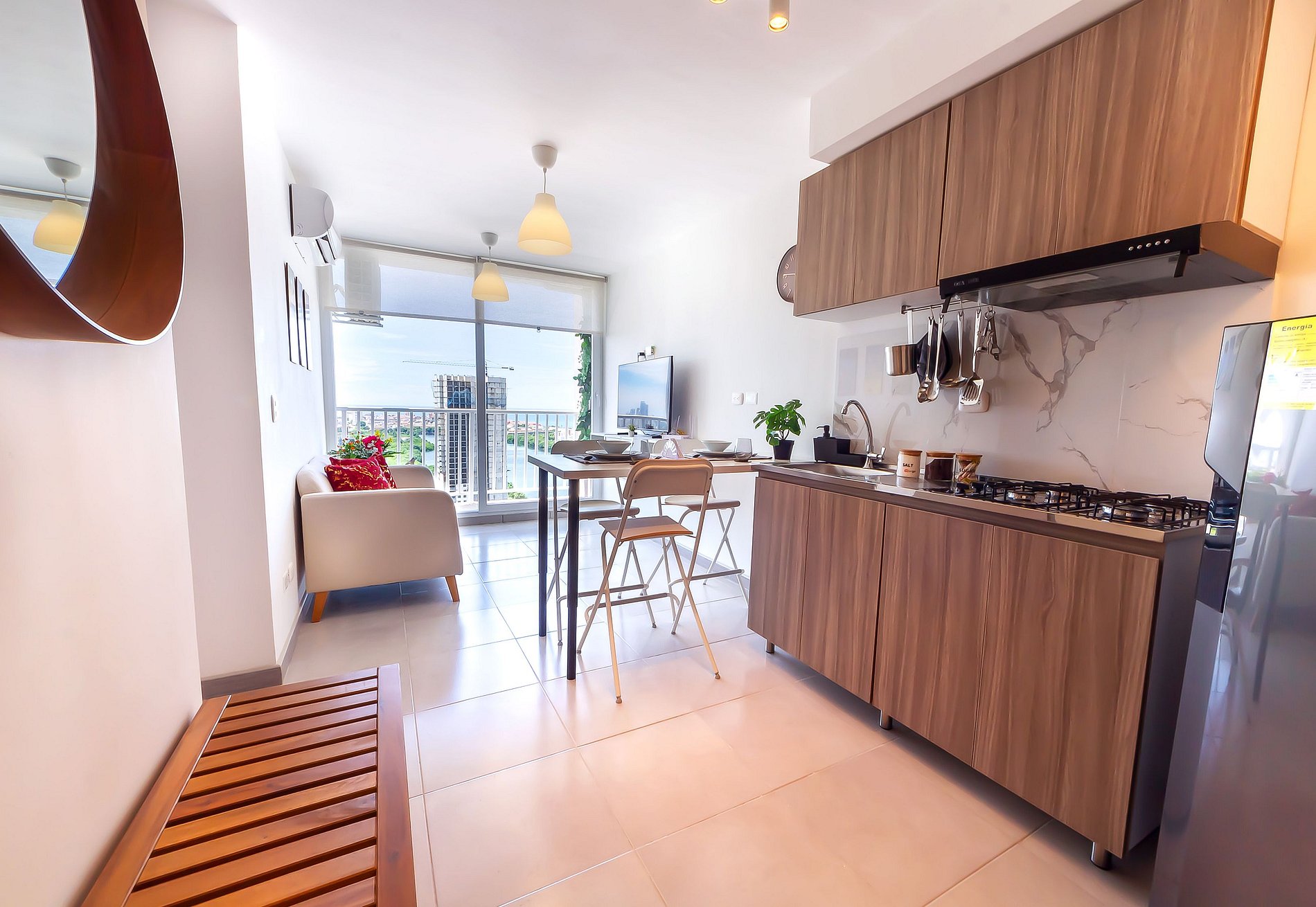 Sunset 47 in Cartagena vereint Komfort, Stil und eine unschlagbare Lage. In einem beeindruckenden Gebäude mit Pool, Coworking-Bereich und privilegiertem Blick auf traumhafte Sonnenuntergänge bietet dieses moderne Apartment eine Hauptsuite mit Queensize-Bett, zwei weitere Schlafzimmer, eine komplett ausgestattete Küche, einen Balkon mit seitlichem Meerblick und Highspeed-WLAN. Nur wenige Schritte vom Strand entfernt ist es die perfekte Wahl, um Cartagena elegant und komfortabel zu erleben.