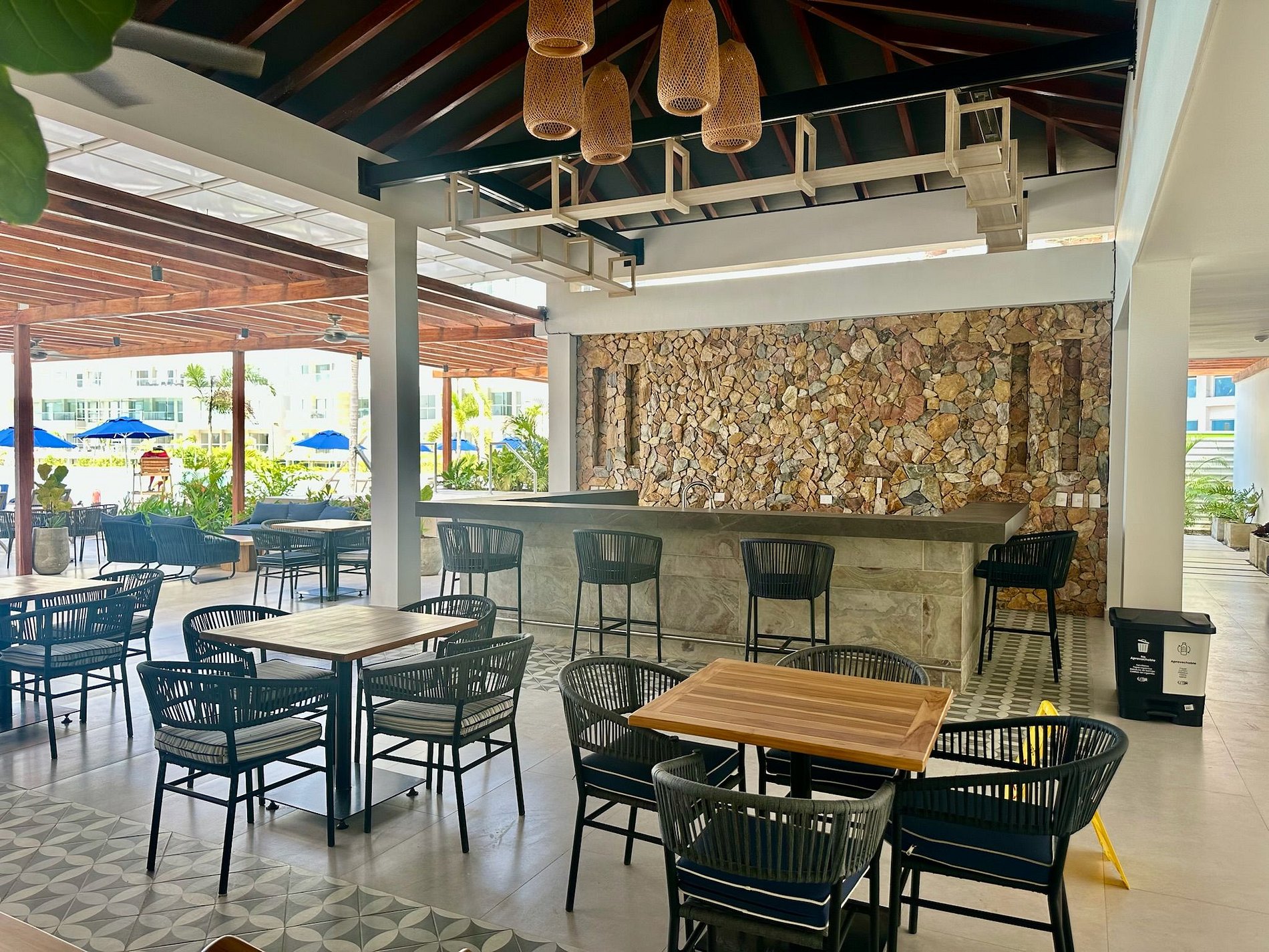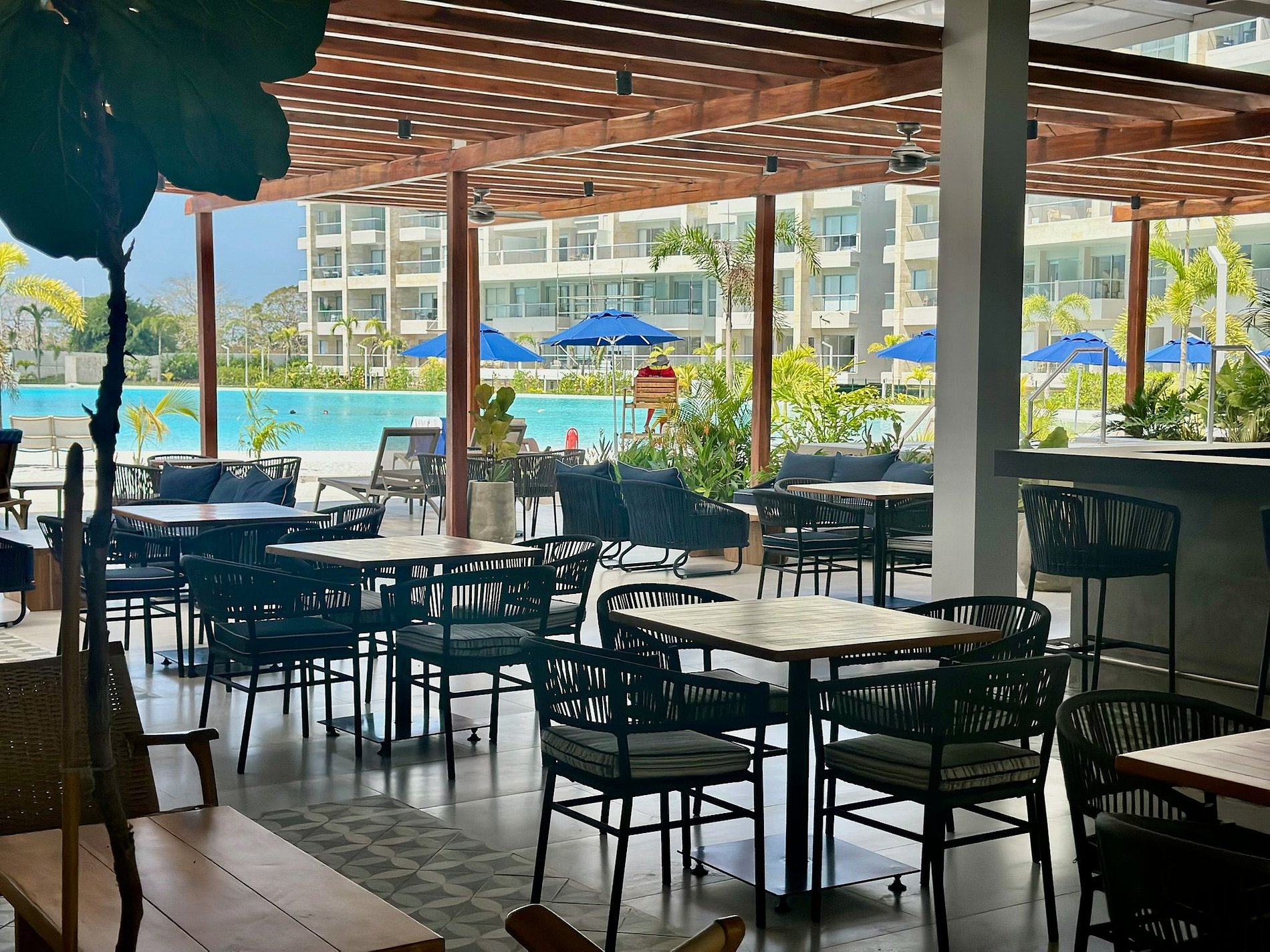 • Terrasse: Entspannen Sie sich auf den Außenmöbeln und genießen Sie den beeindruckenden Blick auf die Lagune. Jeden Tag um 18:00 Uhr können Sie den Sonnenuntergang über den Stränden von Manzanillo erleben – ein einzigartiges und unvergessliches Schauspiel.