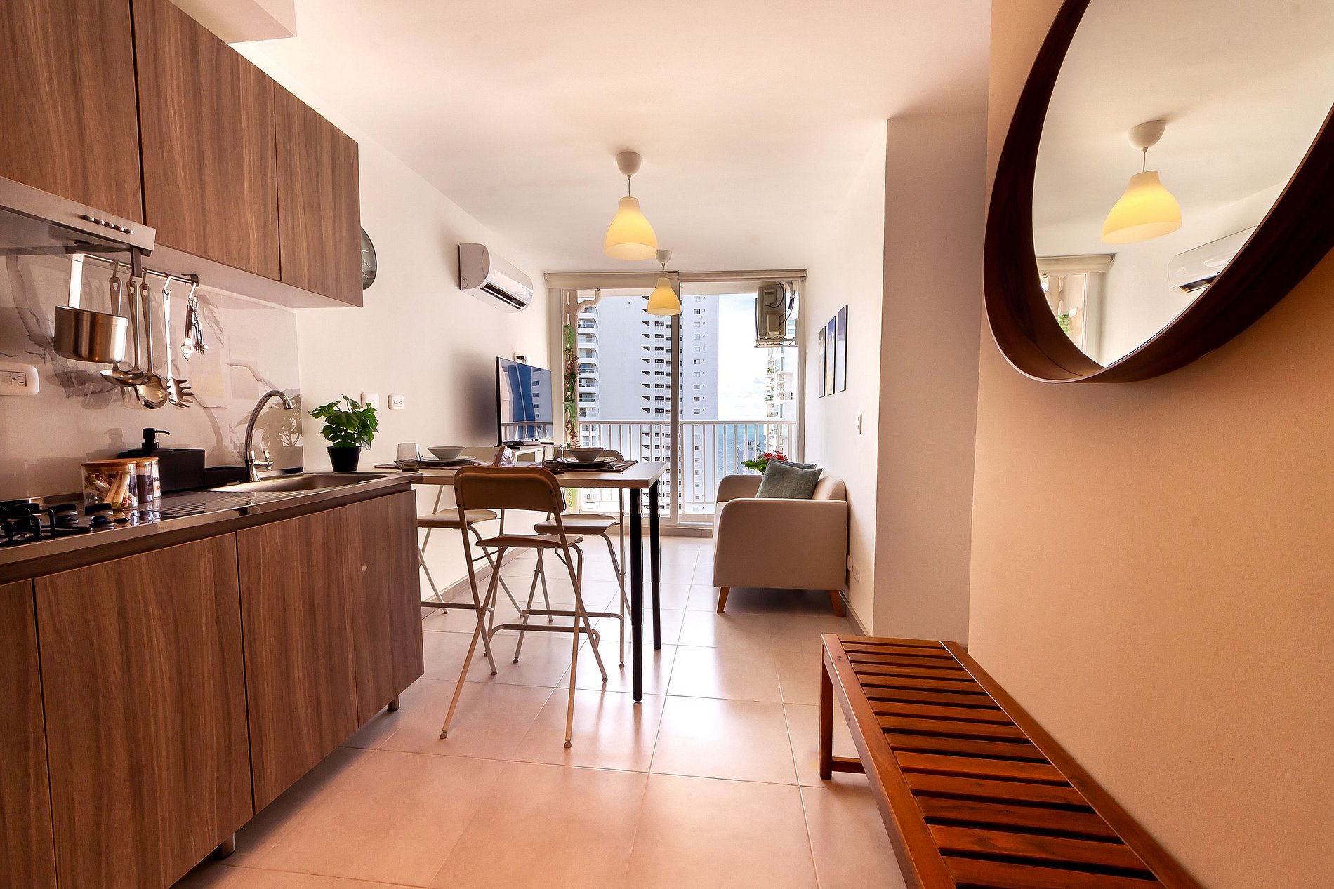 Sunset 47 in Cartagena combines comfort, style, and an unbeatable location. Set in an impressive building with a pool, coworking space, and privileged views of dreamlike sunsets, this contemporary apartment features a master suite with a queen bed, two additional bedrooms, a fully equipped kitchen, a balcony with a side sea view, and high-speed WiFi. Just steps from the beach, it’s the perfect choice to experience Cartagena with elegance and comfort.