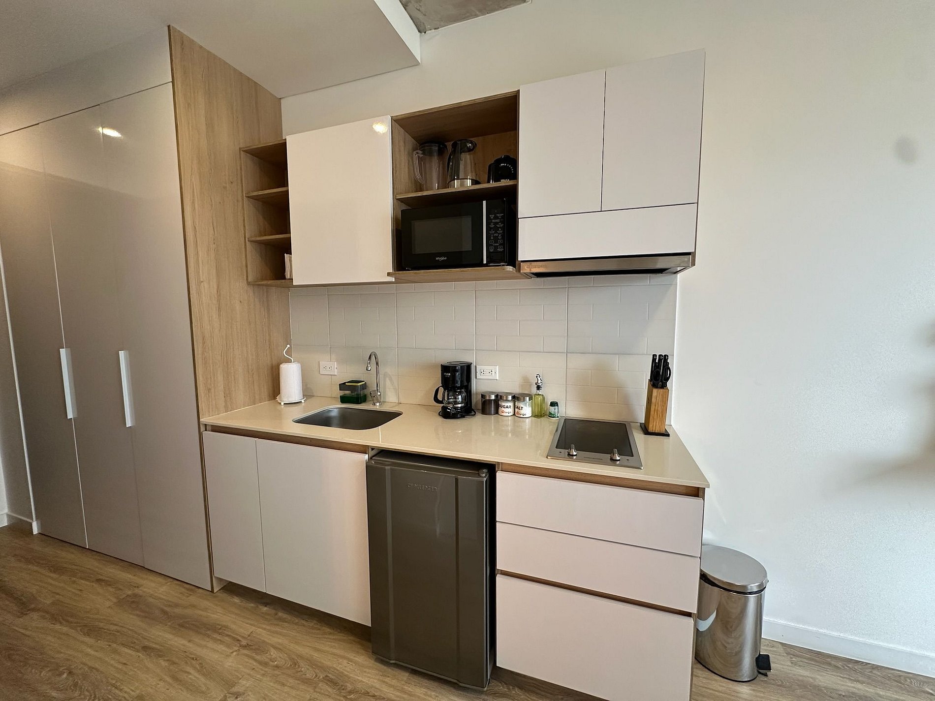 • Gym: Available from 7:00 AM to 10:00 PM on the ground floor. • Coworking: 24-hour access on the rooftop with internet. • Laundry area: Open from 8:00 AM to 8:30 PM, for an additional cost. • BBQ: Available 24 hours on the rooftop, for an additional cost.