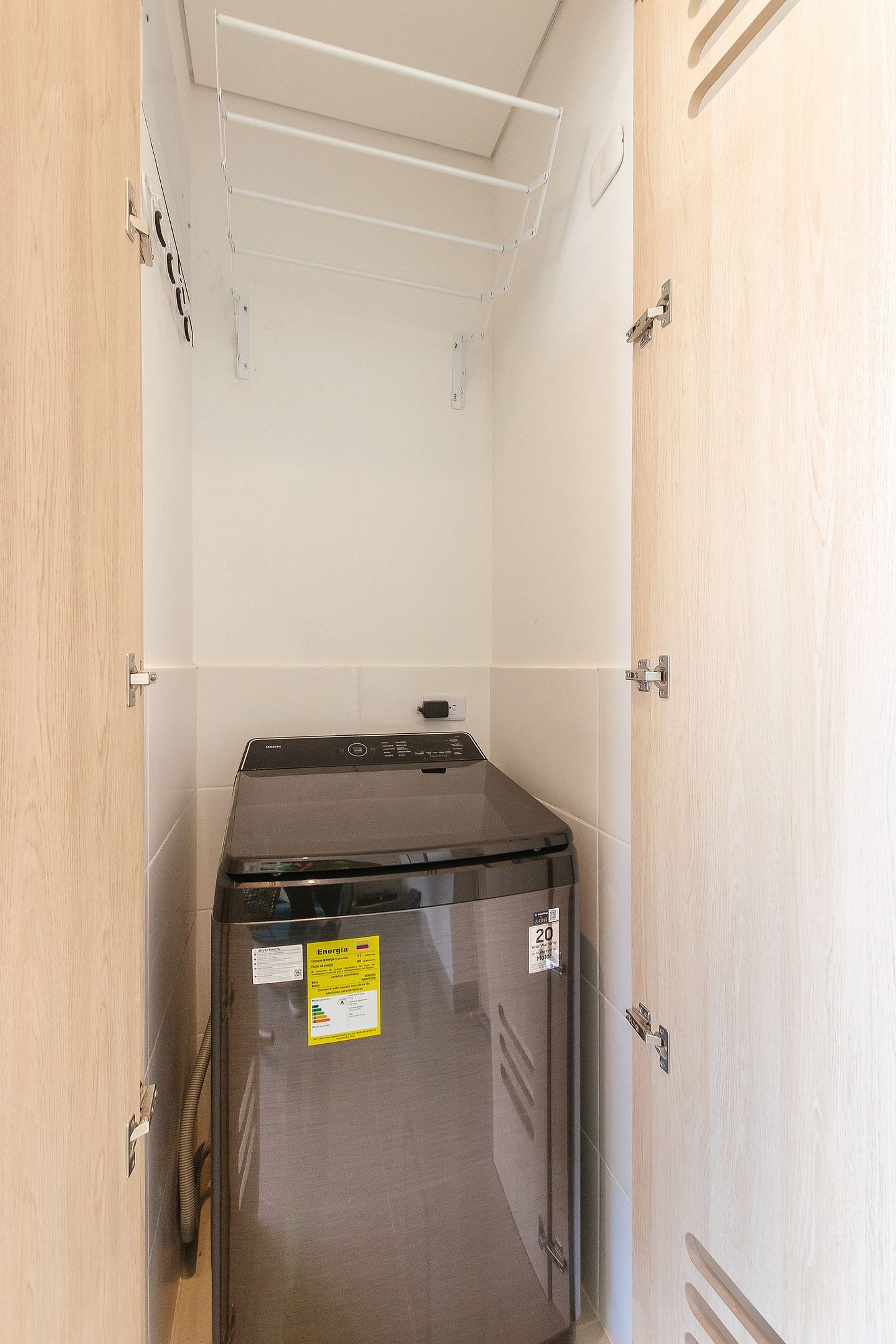 • Laundry room: Includes a washing machine, dryer, and iron.