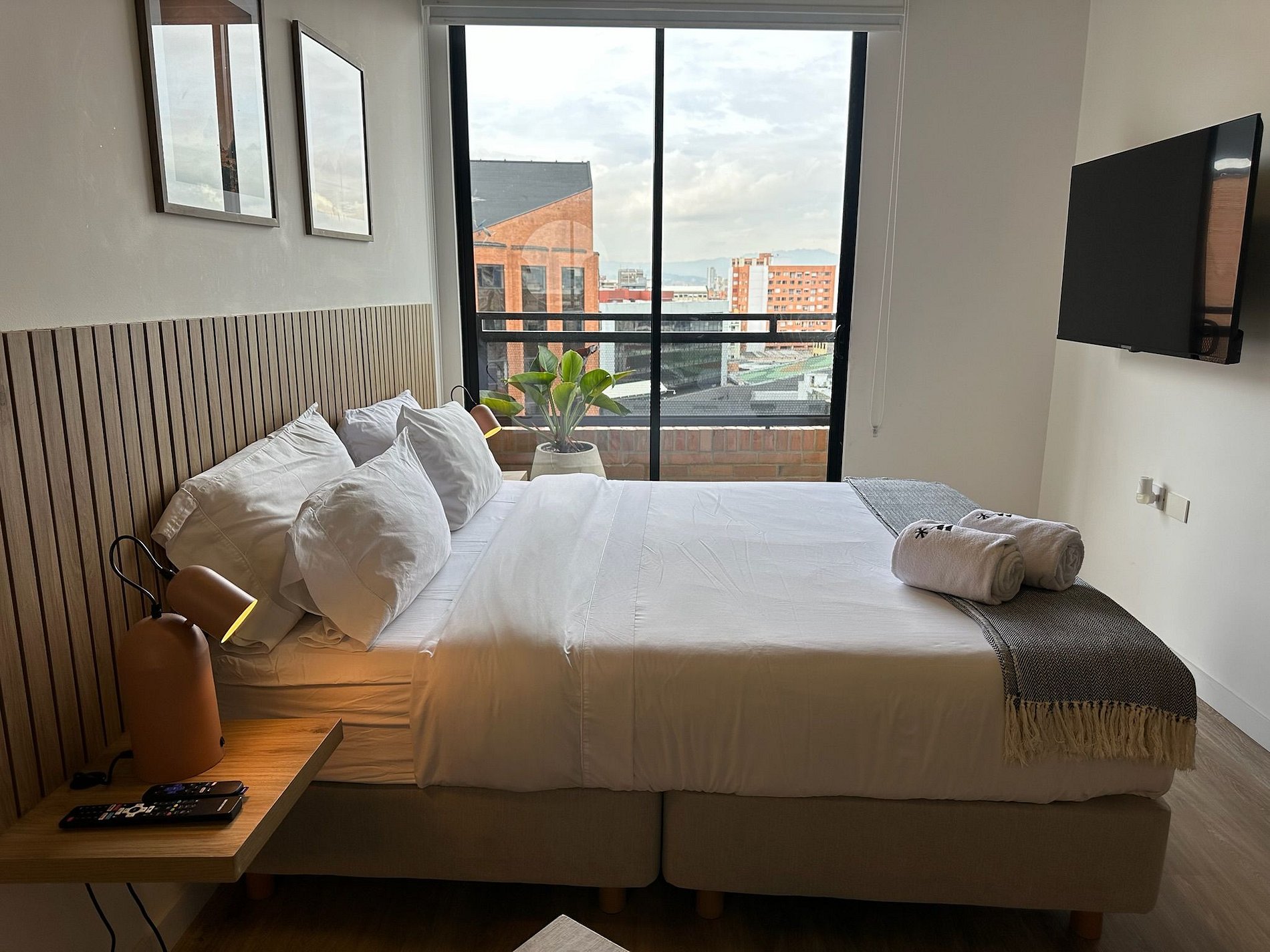 Descubre la comodidad y el estilo en este moderno apartaestudio de Next Living en Chapinero Central, Bogotá. Equipado con todas las comodidades, incluyendo acceso a un gimnasio y un espacio de coworking 24 horas, este estudio es ideal tanto para turistas como para viajeros de negocios. Disfruta de la zona de BBQ en el rooftop y la seguridad de una cerradura electrónica. Perfecto para estancias cómodas y prácticas.