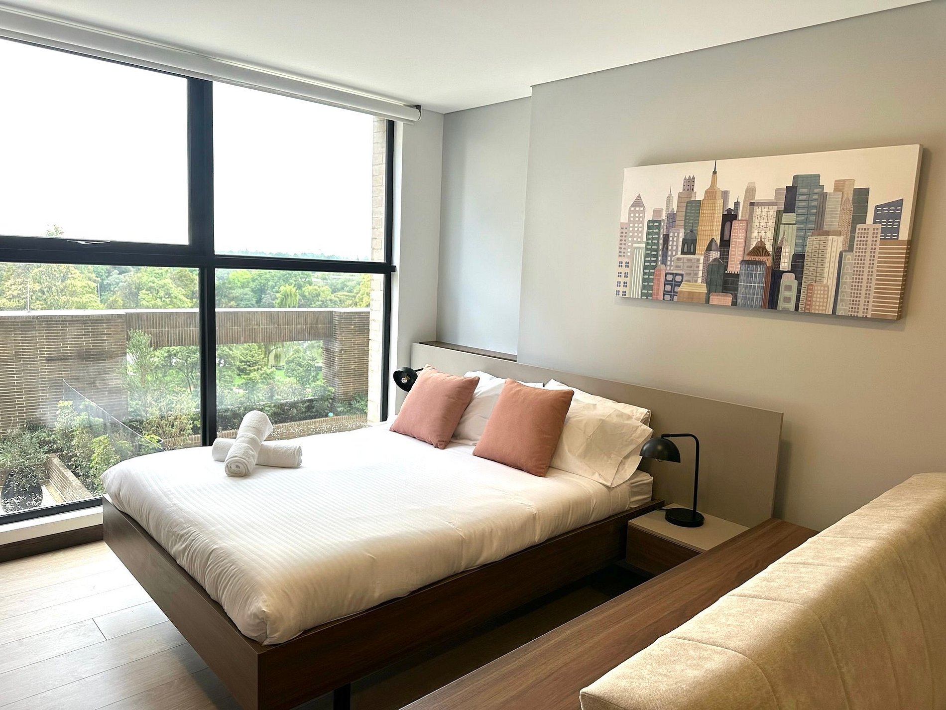 Bienvenido a este moderno apartaestudio en el edificio Manzana 3, en Barrios Unidos, ofrece todo lo que necesitas para una estancia perfecta. Con una cama queen, sofá, escritorio, y cocina completamente equipada, es ideal para viajes de negocios o turismo. Disfruta de wifi de alta velocidad. Este aparta estudio se destaca por sus amplios espacios y su vista al parque Simon Bolivar. Perfecto para quienes buscan comodidad y conveniencia en la ciudad.