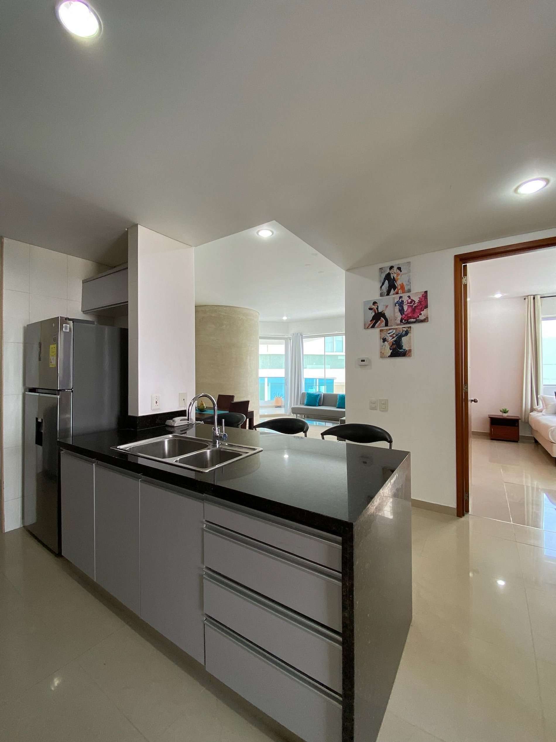 Este moderno apartamento en el edificio Infinito, en el encantador Bocagrande, te brinda una vista impresionante al mar desde su balcón privado. Equipado con cerradura electrónica con código, dos habitaciones con aire acondicionado y blackout, y una cocina totalmente equipada, este espacio está diseñado para tu comodidad. Además, cuenta con agua caliente y ventilador para mayor confort. Ideal para familias y grupos que buscan una estancia inolvidable.