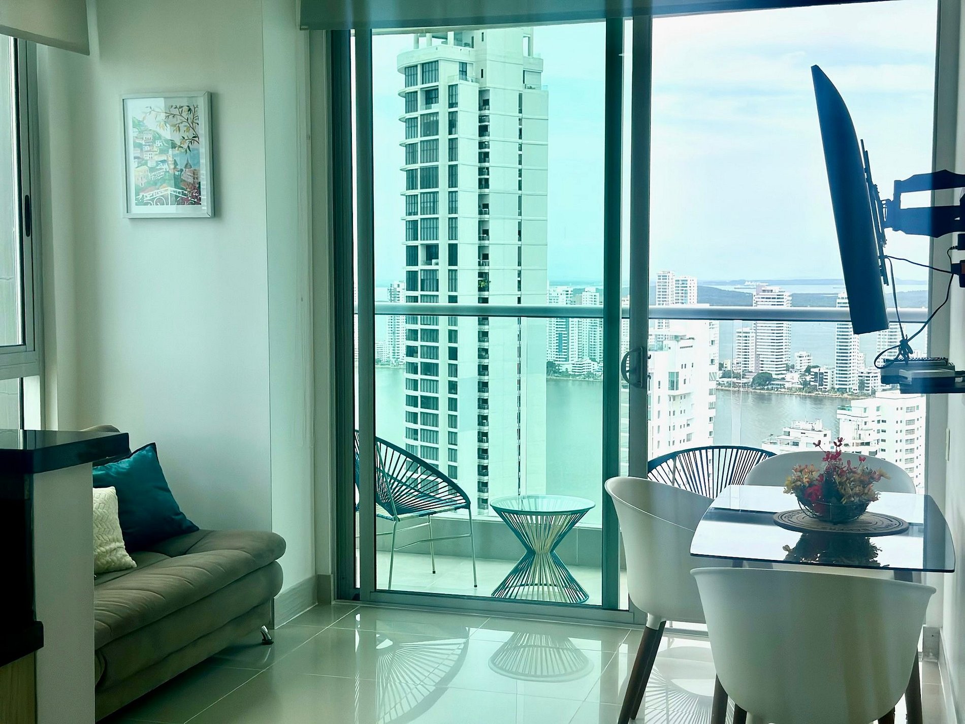 Descubre la paz frente al mar en Cartagena. Este encantador apartamento en Murano Elite, ubicado en el exclusivo sector de Bocagrande, te ofrece una experiencia única con vistas espectaculares a la playa desde su balcón privado. Disfruta de una cómoda habitación con cama queen, cocina completamente equipada y una sala comedor perfecta para descansar o trabajar. Además, disfruta de wifi rápido, dos piscinas, gimnasio y mucho más. ¡Ideal para una escapada inolvidable!