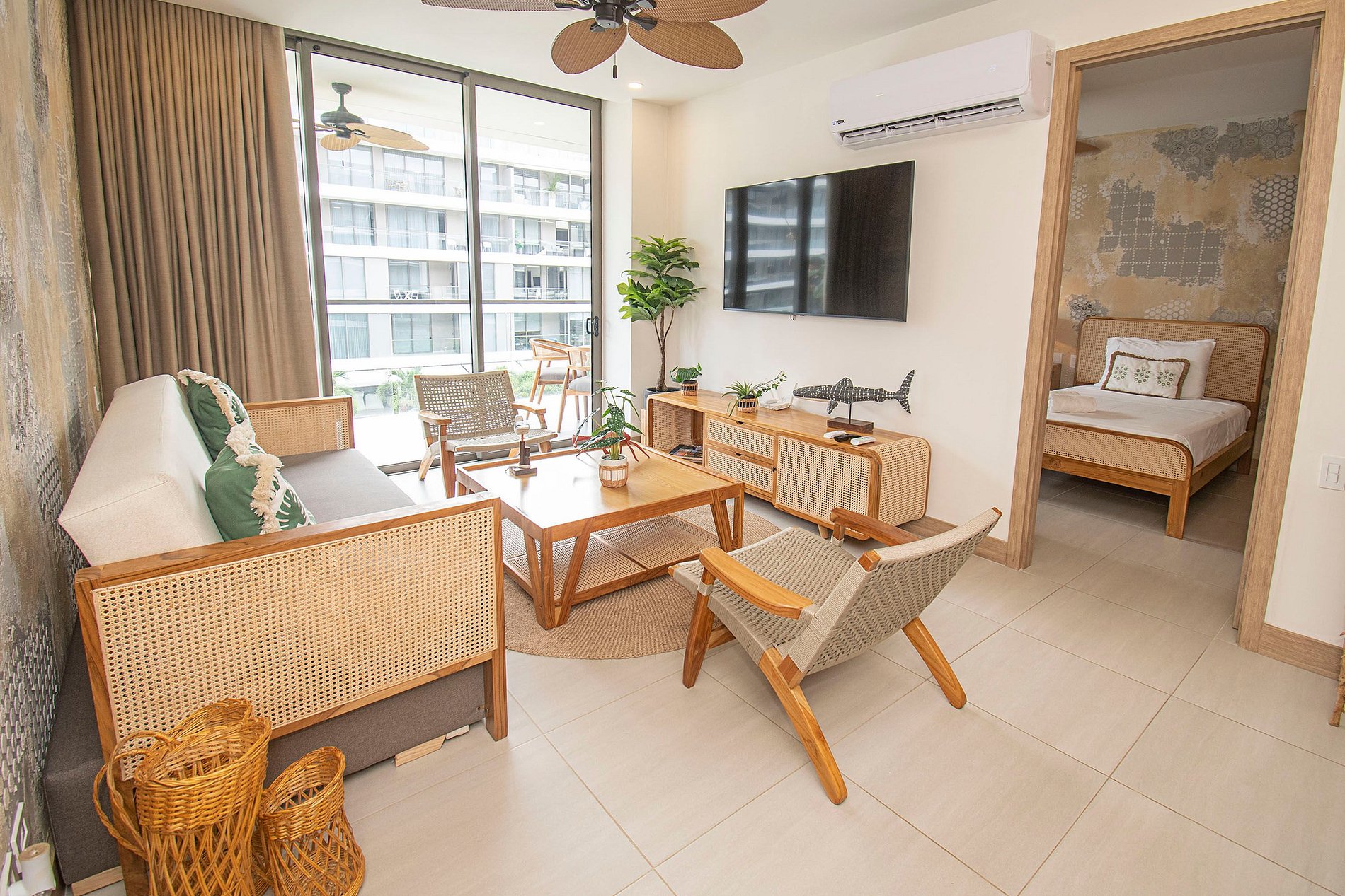 • Habitaciones: Dos habitaciones privadas, cada una con baño completo, aire acondicionado, ventiladores, televisores smart tv y acceso al balcón para disfrutrar de vistas inigualables.