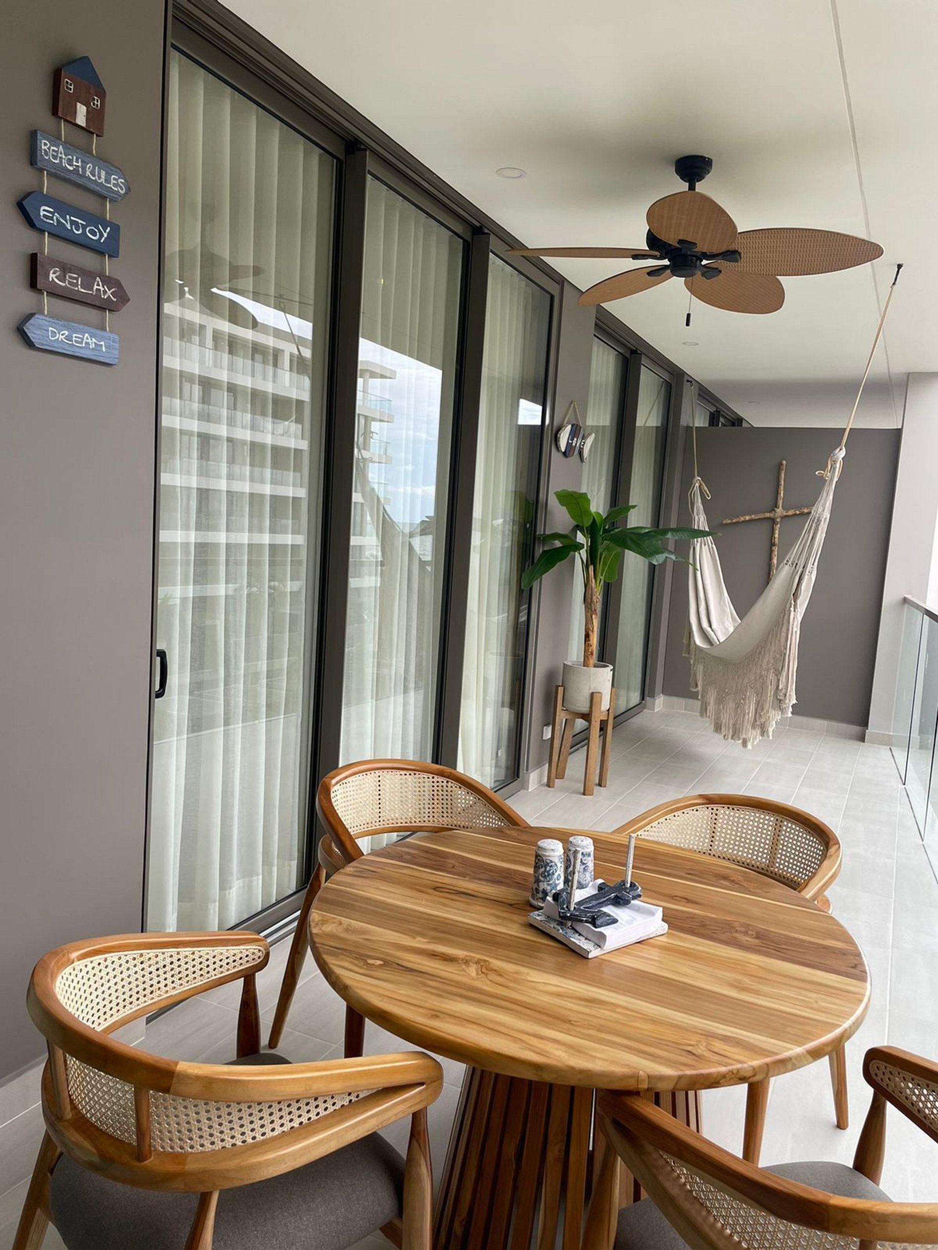 El apartamento está completamente equipado con lavadora, secadora, ventiladores en todos los espacios, aire acondicionado en las habitaciones y aire central en las zonas comunes, garantizando frescura y confort durante toda tu estadía.