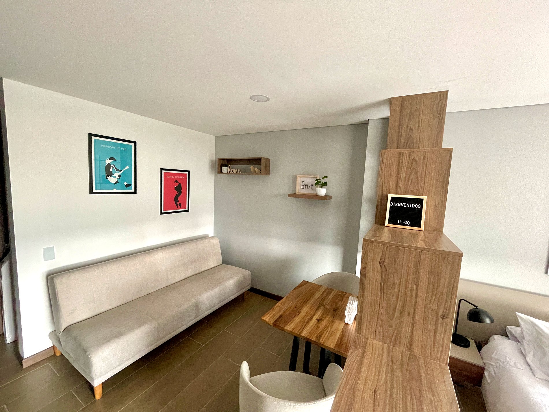 Ce studio élégant dans le bâtiment Manzana 3, situé à Barrios Unidos, vous offre un séjour parfait avec toutes les commodités. Avec un lit queen, un canapé, un bureau et une cuisine équipée, il est idéal pour les voyageurs d'affaires ou les touristes. Profitez du Wi-Fi haut débit, d'Alexa et d'un fer à repasser pour vos vêtements. Parfait pour un séjour sophistiqué et confortable.