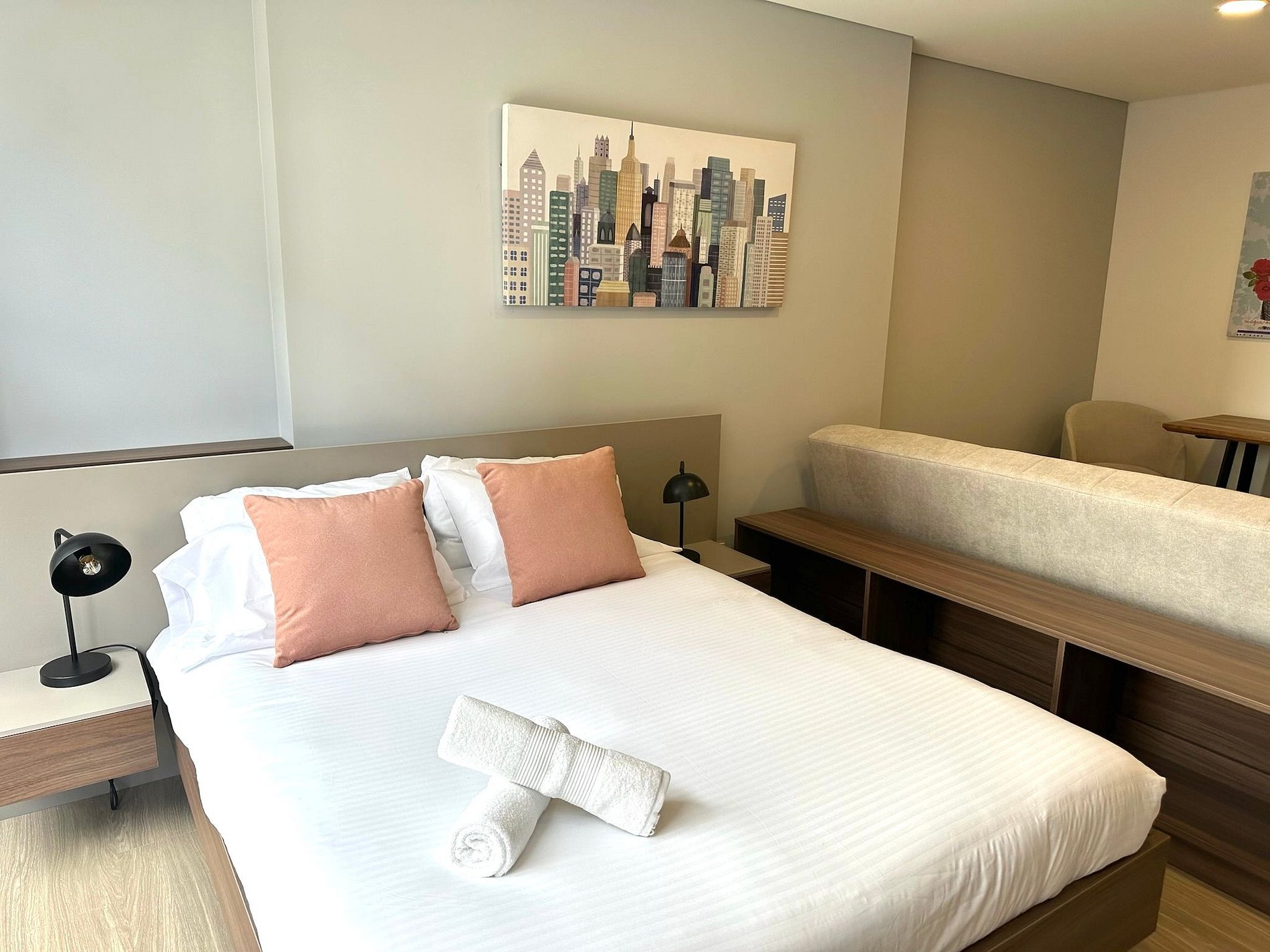Bienvenue dans ce studio moderne dans le bâtiment Manzana 3, situé à Barrios Unidos. Il offre tout ce dont vous avez besoin pour un séjour parfait. Avec un lit queen, un canapé, un bureau et une cuisine entièrement équipée, il est idéal pour les voyages d'affaires ou de loisirs. Profitez du Wi-Fi haut débit. Parfait pour ceux qui recherchent confort et commodité en ville.