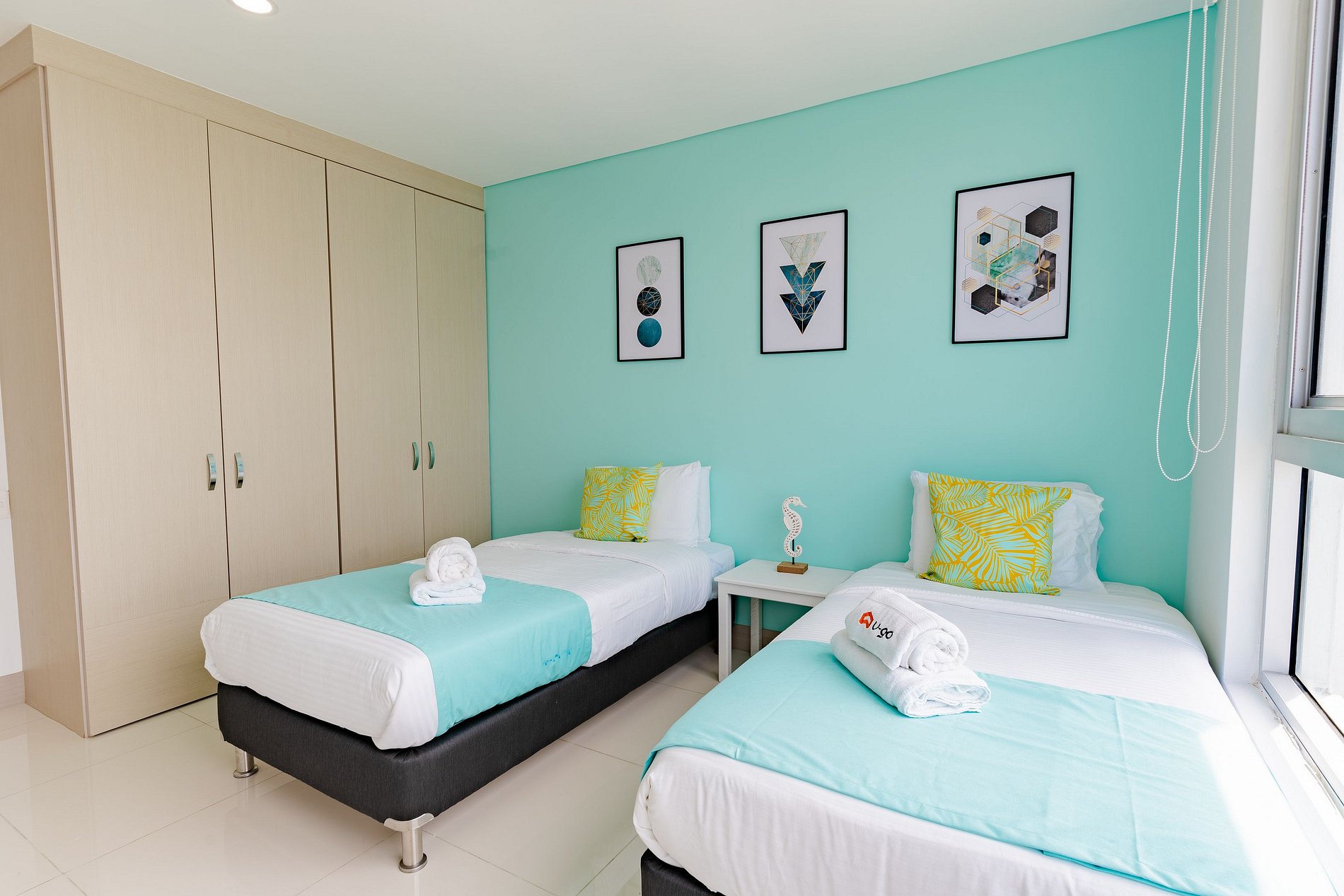 Cet appartement moderne dans l'immeuble Palmetto Beach, situé dans le quartier vibrant de Bocagrande, offre des vues imprenables sur la mer depuis son balcon. Il dispose de deux chambres, une suite avec un lit queen et une autre avec deux lits simples. L'immeuble dispose d'une piscine, d'une salle de sport, d'un jacuzzi et d'un service de consigne de bagages. Idéal pour les familles et les groupes en quête de confort et de commodité dans un cadre exclusif.