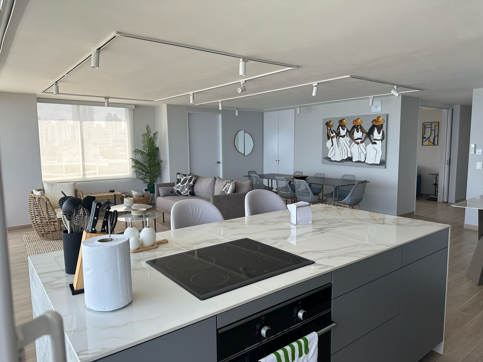 Vivez le luxe à Carthagène ! Cet appartement moderne dans l'immeuble Faro Tequendama, situé à la frontière entre El Laguito et Bocagrande, offre un balcon avec vue sur la mer et un séjour confortable. Profitez de trois suites, deux avec des lits king-size et une autre avec deux lits simples, ainsi qu'un salon/salle à manger impressionnant. La cuisine moderne est entièrement équipée. Avec le Wi-Fi haut débit et l'accès à la piscine de l'immeuble, c'est parfait pour une escapade relaxante.