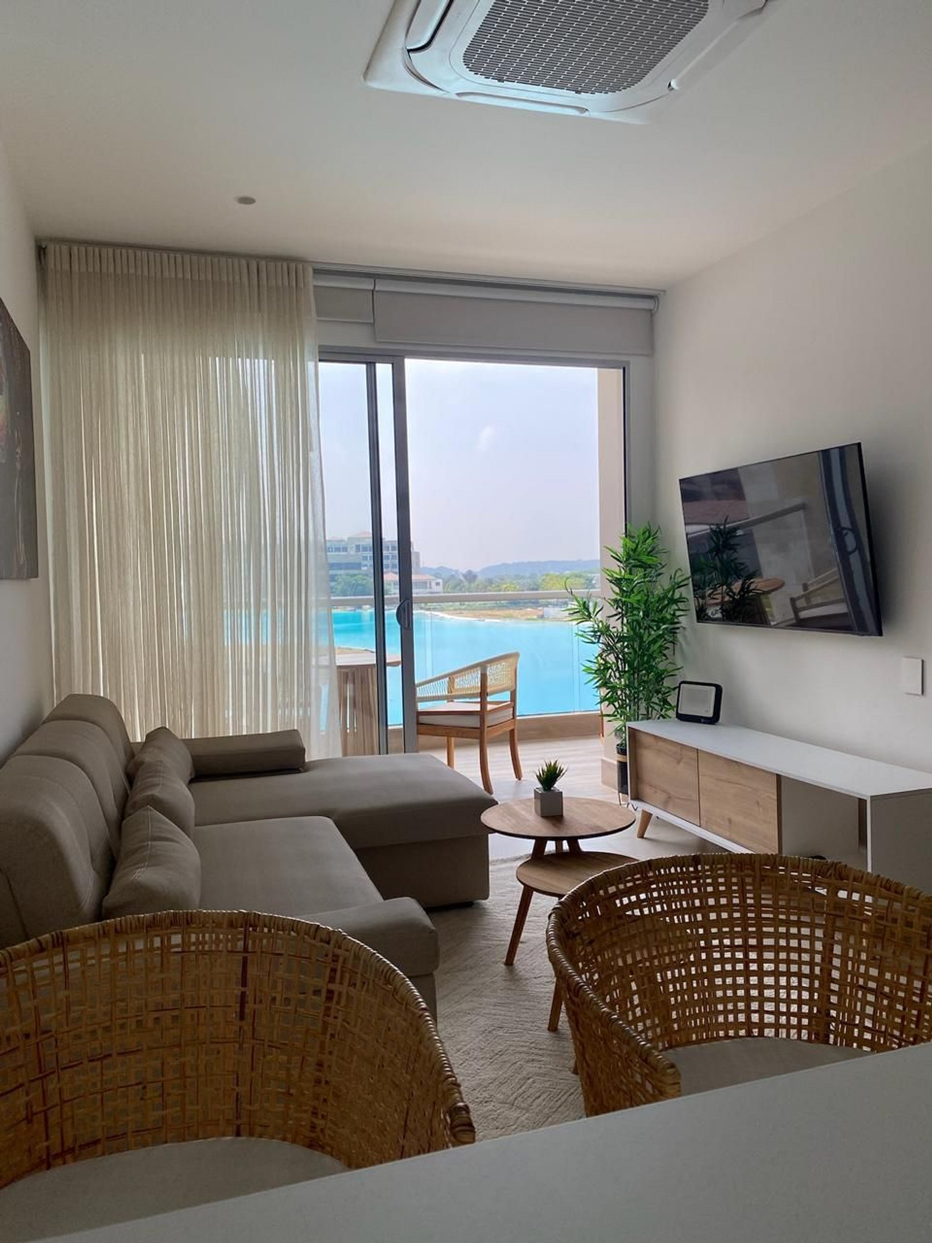 Goditi un soggiorno indimenticabile in questo appartamento moderno a Baia Kristal, con una splendida vista sulla laguna cristallina. La camera dispone di un letto queen-size e aria condizionata, mentre il soggiorno offre un divano letto, TV e Wi-Fi veloce. La cucina attrezzata e la terrazza privata garantiscono il massimo comfort. L’appartamento è dotato di serratura elettronica e si trova a soli 30 minuti dal Centro Storico di Cartagena.