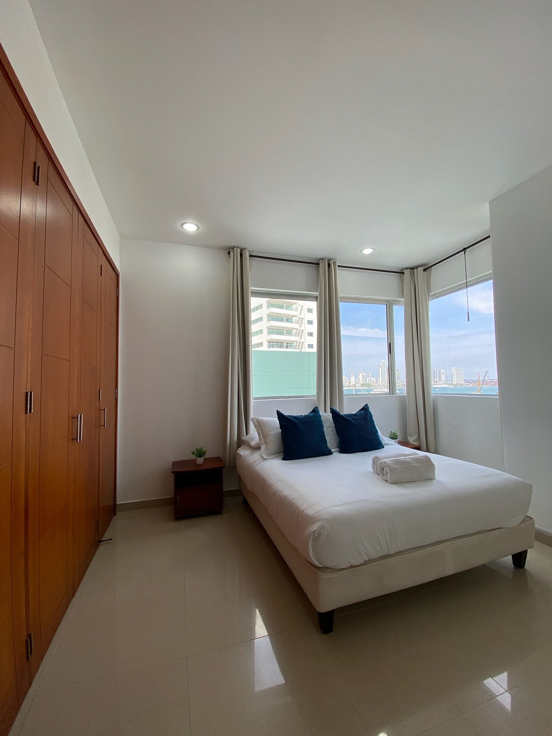 Questo moderno appartamento nel palazzo Infinito, situato nel suggestivo Bocagrande, offre una vista mozzafiato sul mare dal suo balcone privato. Dotato di serratura elettronica con codice, due camere da letto con aria condizionata e tende oscuranti, e una cucina completamente attrezzata, questo spazio è progettato per il tuo comfort. Inoltre, dispone di acqua calda e di un ventilatore per maggiore comfort. Ideale per famiglie e gruppi che cercano un soggiorno indimenticabile.
